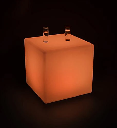 Spice up your bar, lounge, or event with a modern style using this LED cube table. Each piece of furniture has a rechargeable lithium ion battery that can last between 10 and 12 hours on one charge. The LED table comes with a remote control that can change colors, flash, and dim at the touch of a button. Plastic construction paired with rubber plugs in each charging port make each furniture piece water resistant for outdoor use while the frosted white finish maintains a touch of modern style. LED tables such as this can make your event booth pop out from the rest with eye catching light illumination. The 23.5” surface makes this water resistant fixture perfect for customers to share a drink over at your restaurant bar.