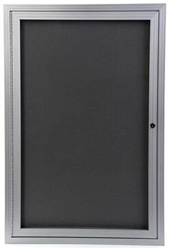 This black magnetic board with stand is manufactured with an oval metal base and curved pedestal and angled aluminum frame. Front lens UV inhibitor polycarbonate cover provides a protective panel to prevent the contents underneath from yellowing over time. Additionally, the swingframe magnetic board is equipped with a water resistant rubber gasket to protect any signage held within from being damaged from seasonal conditions. Use the included magnets to create a personalized and unique display of specials, services, deals, and reviews for passerby’s to glance at as they stroll past. An enticing advertising presentation can aid in generating business, which is exactly what these enclosed bulletin displays for magnets are designed to do. Black powder coat finish provides a durable coating for the stand to be able to tolerate the elements. The tilt and push design with the two wheels attached at the base makes transporting the magnetic board effortless at the end of the night.