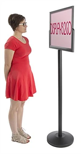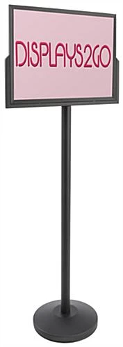 This stanchion post with sign holder is a stylish fixture from our UpLuxe Series to display posters within any environment! Each stainless steel advertisement stand measures 66”h to be easily viewed from any vantage point! The double sided stanchion post is constructed with a weighted base to ensure the unit stays upright and does not lean. A stainless steel poster display, such as the stand shown here, is great for any business seeking a long-lasting unit! Buy this stanchion post with a sturdy, weighted base today! Be sure to browse through the entire line of UpLuxe sign holders for the frame size that is most ideal for your business!