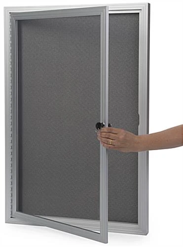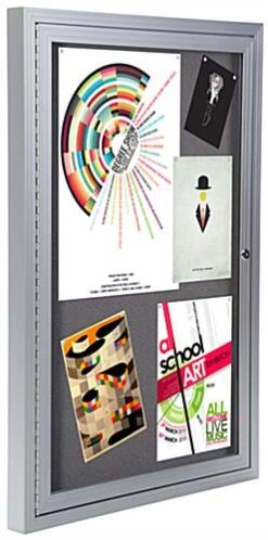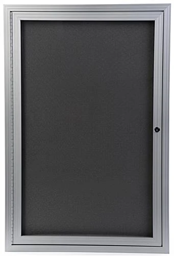 Built with a durable aluminum frame and outfitted with wall mounting hardware, this 24″ x 36″ fabric bulletin board is ideal for any environment. The silver finish complements your existing setting as well as the 2’ x 3’ gray cloth material inside the case. Quickly swing open the aluminum frame bulletin board to insert photos, documents, flyers and more! Each unit comes with a lock and set of keys to keep items on display safe from theft or tampering. Place a cork display on the wall of schools, offices, and entrance ways to showcase information to passersby with ease. Keep your documents and memorabilia safe with a modern and stylish fixture such as this bulletin board.