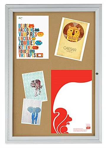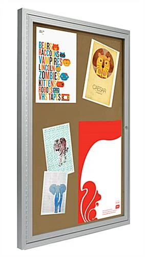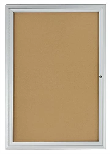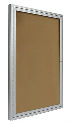 These cork bulletin boards are ideal purchases for posting memos, schedules, directories, and signs. A message display communicates with guests and visitors of an establishment. All cork bulletin boards, with aluminum frames, are long lasting and durable. This message display allows users to tack material over and over again to the corkboard surface. Cork bulletin boards, that are school purchases, can also be used in offices, hospitals, waiting rooms, and lobbies. Each corkboard is designed with swing frame doors to allow users to change out information quickly. These cork bulletin boards, for message displays, are constructed with a lock. The tackboard keeps materials safe inside with the lock and key.