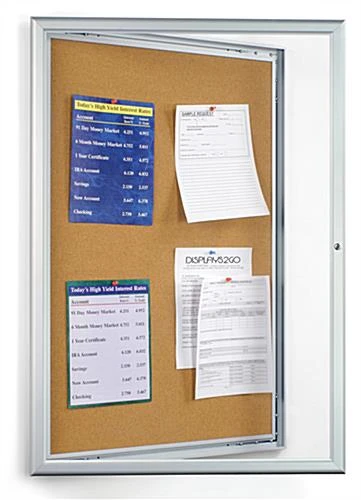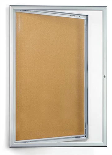 These enclosed bulletin boards provide a perfect display space for postings such as announcements or creative advertisements. These bulletin boards exhibit your important information in hallways, classrooms, vestibules, reception rooms or more! The single lockable door ensures that documents, graphics or pictures stay clean and undisturbed. These modern frames have clean lines which blend well with any décor