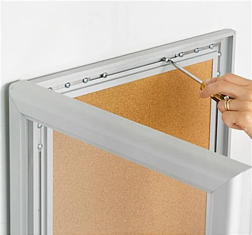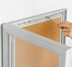 These message boards, enclosed bulletin boards have a beautiful aluminum satin finish. These enclosed bulletin boards are the perfect tack boards for upscale environments as the quality finish and design is sure to draw attention. These enclosed bulletin boards, also known as announcement boards, can be mounted vertically or horizontally. The boards come ready to install with pre-drilled holes and all the hardware necessary for mounting. These lightweight frames mount with 4 screws and anchors. These enclosed bulletin boards are a fantastic way to display your messages indoors!