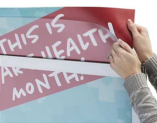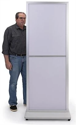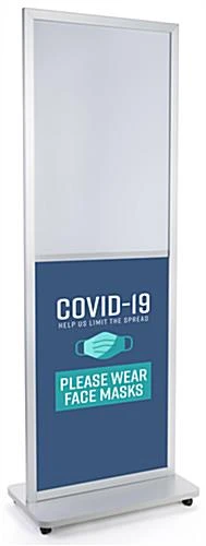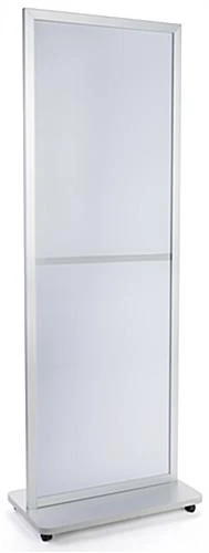This versatile fixed-width 2-sided portable poster stand is an easy way to section off areas of high traffic while providing multiple graphic display options. Each sign holder includes a magnetic divider bar to separate 24” x 36” graphics. Remove the partition on the adjustable 2-sided portable poster stand and accommodate a large format 24” x 72” print. Mix and match graphic display sizes on the sign holder for your perfect setup. Each portable poster stand is top loading and includes PVC lenses for added protection. The base includes locking wheels for easy maneuverability. Position this large format sign holder in your space to promote advertising or important distancing guidelines from either direction today!