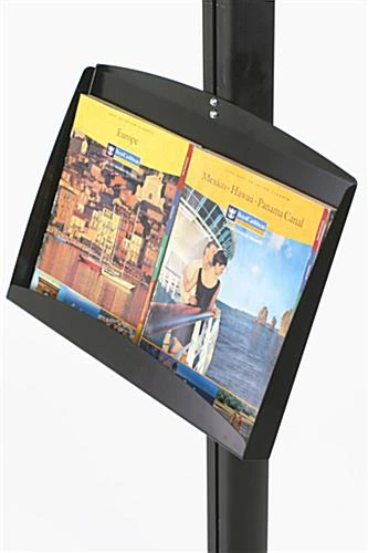 These magazine holders are large and eye catching displays. These sign displays, magazine holders are used for indoor locations only. These magazine holders, also known as poster holders, feature a sophisticated design and are built to last. The sleek black finish of the magazine holders allows them to easily blend in with any store layout or decor. The magazine holders, such as sign stands, or leaflet holders, are ideal for trade shows, shopping malls, and hotel lobbies. Use these magazine holders to boost sales and customer interest!