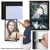 Our high quality silver swinging poster displays allows you to change your 24″ x 36″ posters with ease. The silver swinging poster displays give your posters a very professional look and will focus the attention of your customers and employees to your advertisements. A strong and lightweight acrylic cover protects your poster. Each frame comes with reusable adhesive tape for holding your posters to the backing board. When the wide face door closes onto your poster, it will overlap your poster by 1/4″ on each edge.
