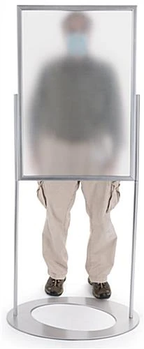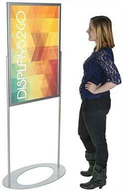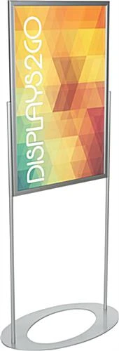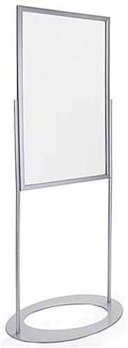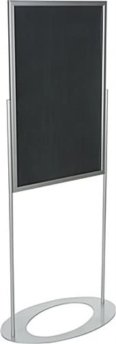 This metal sign holder is great for store advertising, as it features a quality construction at an affordable price. The poster display stand measures 68” tall to capture the attention of patrons as they explore your store. Each freestanding sign holder with an oval base has a large display area to exhibit graphics measuring 24” x 36” in size. All units come with two protective, non-glare lenses which guard posters from dust and fingerprints. The sign holder is designed for indoor use and also includes a black backer to help support the prints inside. This backer ensures that advertisements will not buckle within the frame.