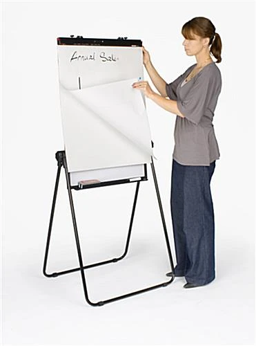This markerboard is truly a versatile adjustable easel. Featuring a dry erase surface, the adjustable easel is ideal for use during presentations or company meetings, in such locations as conference rooms, classrooms and more. An adjustable easel provides a useful tool for teachers to prepare lectures in advance. Double-sided, you can easily flip the markerboard around without having to erase part of your lecture! With its fully rotational easel hinges, you easily transform the adjustable easel from a floorstanding fixture into a countertop display. Simply turn the knobs on either side of the adjustable easel and alter both the height and viewing angle with ease!