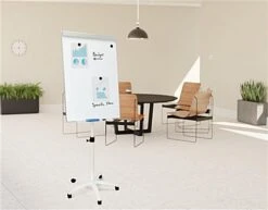 This magnetic mobile dry-erase board is perfect for taking instruction and collaboration on the go. The writing surface measures 28″w x 40″h, and the unit weighs only 41 lbs for effortless transportation around your facility. This magnetic mobile dry-erase board is constructed of aluminum and steel and features a beautiful lacquer-coated steel board surface. The whiteboard offers a lightweight and portable design, making moving from one meeting room to the next a breeze. The smooth white surface easily wipes clean without staining or ghosting. This product also features locking wheels for writing stability, an accessory tray, a clamp, and two sliding hooks that are perfect for securing personal items and presentation materials. The product includes two whiteboard markers with brush covers, three magnets, and an eraser. This mobile dry-erase board is ideal for agile work environments and brings style and function to any meeting room, office, or studio.