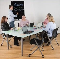 Slide this rolling magnetic glass dry erase easel anywhere in the office or classroom with ease using its four wheels. The standing whiteboard features both a black and a gray side for extra room to write on a background of your choosing. Each mobile glass dry erase easel board flips over by pressing down on the locking mechanism. Additionally, the standing whiteboard also comes with a marker and eraser tray to ensure your utensils are always within arm’s reach. Move the glass dry erase easel freely around the room and lock the wheels when you’re ready to write. Use this floor standing fixture in your office to jot down sudden sparks of creativity or plan out your next project.