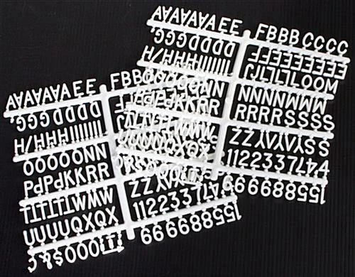 This letter set includes 3/4″ letters on two separate sprues. The letter set is an economy product and does not come with a storage box; however you get almost double the number of letters, numbers, and symbols when compared to the deluxe models. Simply pull off the letters from the sprues and start adding your custom text to your letter boards!