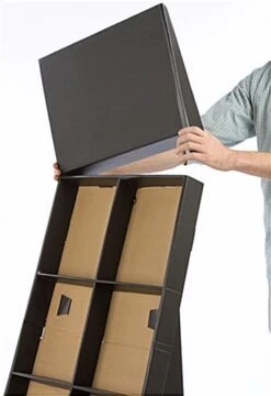 This retail store display is a great way to present your products. The retail store display is made of corrugated cardboard with a shiny finish. This magazine rack, retail store display will keep your for sale literature for sale organized, while remaining in view of all your customers. The retail store display also has a removable header, so you can customize the display specifically to your displayed merchandise.