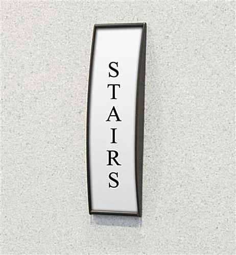 This name plate, door sign is often used in hospitals, banks, lobbies, offices and universities. The product can be used to showcase room numbers, occupant names, or wayfinding signage. Constructed from black, anodized aluminum extrusion with plastic end caps, this door sign is very durable and can last for many years to come. The curved design of this frame makes the contents stand out, drawing attention from multiple directions! This wayfinding signholder, door sign also provides users with a fast and easy way to change graphics. Simply use the included suction cup to lift the non-glare lens, and place the graphic underneath the lens to protect your graphics. The easy-to-use design of this door sign is ideal for signage needing to be updated on a regular basis, as signs can be changed in mere seconds. The non-glare lens prevents both dust and glare from hindering the view of your displayed signs.