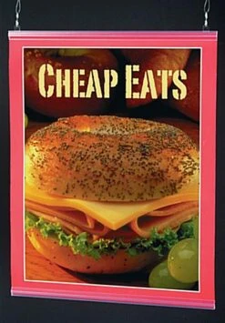 These banner hangers are a great alternative to cheap plastic frames, or heavy metal framing. These poster holders are very easy to change, simple to hang and make excellent marketing displays. Many companies are opting for these banner hangers rather than wall mount frames to capture the attention of customers. By having these print holders suspended from the ceiling, it allows other signage or advertisements to be mounted on the wall. Large department stores, and grocery stores use these banner hangers to announce new products, or as a method of keeping customers informed of specials or store layout. These poster rails can also be used along with suction cups to post signage in a storefront window. These banner hangers are built to last and offered at an incredibly affordable price. The rails can hold onto thin paper or beefy banner material with no danger of slipping.