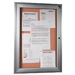 This enclosed cork board features self-healing cork, ready to withstand years of use. Use this bulletin board, enclosed cork board to show your patrons specials, or announce when to students when various groups meets at their dorm. This enclosed cork board provides a great display for most environments. Made of sturdy aluminum, announcement boards, tack boards, and other enclosed cork boards hold up well over many years. This bulletin board is a great enclosed cork board with its locking door made of shatter resistant acrylic. This allows you to place your bulletins in this case with peace of mind. Displays2go partners with Ghent to bring you this deluxe, US manufactured enclosed cork board display. Ghent is a premier manufacturer and marketer of American made visual communication products and specialty furniture, since 1976.