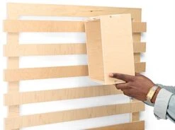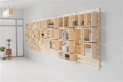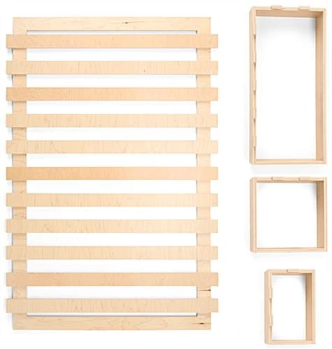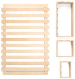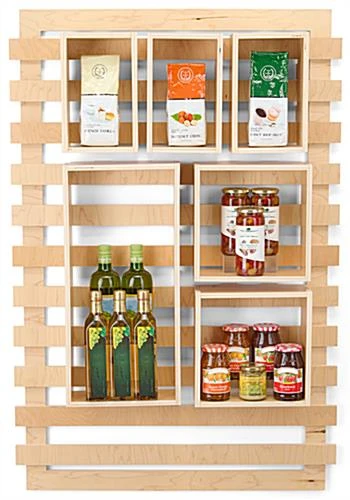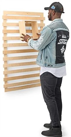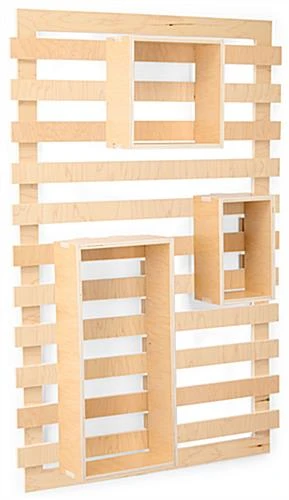 Bring organization and harmony to your merchandising space with our fully recyclable wooden display, the perfect solution for establishments looking to meet their sustainability goals with eco-friendly fixtures. Sold in a 4-piece set, including one slatwall and three different-sized box shelves that hook onto the slats effortlessly, this modular unit was made to be updated frequently to suit your display’s changing needs. Additional pieces can also be purchased separately (either an or a ) for further configuration, combine numerous units togehter to create a wall of shelving units. Weighing in at just 21 lbs, but capable of holding up to 90 lbs, our slatwall organizer is both sturdy and lightweight for easy mounting. Featuring a natural wood finish, our slatwall organizer brings a modern contemporary look to any retail space, cafe, and more.