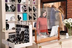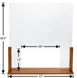 This upscale wood-framed sneeze guard is a design-forward way to add personal protective equipment to your café, retail shop, bar, beauty salon, and more. Our wooden shield measures 33″ W x 36″ H, providing plenty of coverage between your employees and patrons when social distancing is not an option. This upscale wood-framed sneeze guard with passthrough for countertops is perfect for hotel check-ins, bank teller windows, cashiers, and reception desks. The opening is 20″ W x 12″ H, providing ample space to conduct regular business transactions with ease. This acrylic protective shield with an oak stained wooden base is clear with a minimal design creating very few view obstructions in your shop or restaurant. Our modern upscale wood-framed sneeze guard is an easy way to enforce social distancing without compromising your space’s overall aesthetic.