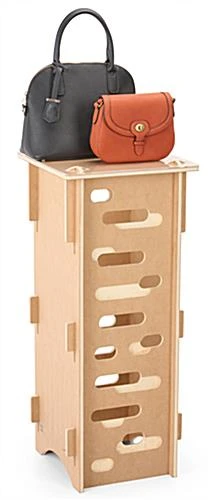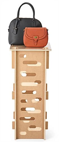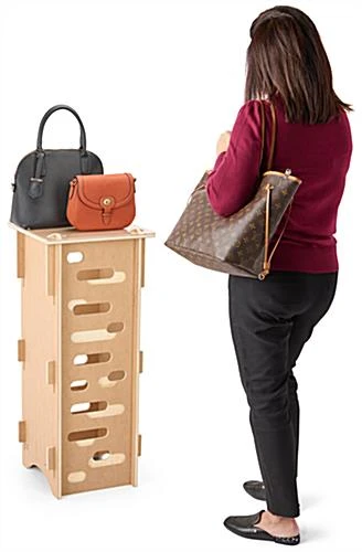 This wooden pedestal is the perfect environmentally friendly display stand to showcase merchandise in any retail space. The sustainable unit is made in the USA with FSC-certified wood material, keeping the planet in mind. The modern wooden pedestal features a recycled acrylic topper to protect the display stand surface from busy shoppers while showcasing your merchandise. A conveniently placed QR code on the side of our sustainable poplar wood riser allows easy digital access to assembly instructions, saving on paper and printing resources. Assembly is simple, as it requires no complex tools or hardware. This lightweight, portable display stand can hold up to 80 lbs, making it an ideal option for trade shows and pop-up shops. This eco-friendly wooden pedestal unit is the perfect way to showcase your promotions, art, and bestsellers responsibly. Pair this 36″ display stand with our collapsible 30″ and 42″ pedestals to create a cohesive collection designed to make your merchandise stand out.