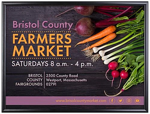 This aluminum 36×48 frame that has a front-loading design, allowing businesses to display a 36″ x 48″ print either in landscape or portrait style. Each unit is equipped with a non-glare lens to protect the graphic underneath. The non-glare overlay included with this 36×48 frame that has matte black finish also helps keep fingerprints, dust and debris from harming the signage. An advertisement display, like the framing seen here, gives users the ability to instantly update signage. This 36×48 frame that features snap open and close edges makes updating posters effortless. Just lift up the sides and change the graphic from the front without detaching the unit from the wall surface. Changing pictures has never been so easy! For businesses that frequently change graphics, this poster holder is an ideal tool. Each 36×48 frame features wall mount holes that are concealed inside the framing for a sleek appearance. The entire unit mounts easily to the wall with screws and anchors included. This aluminum snap-open picture holder works well in any commercial or residential environment. The poster display, like the one shown here, is sold in silver finish as well.