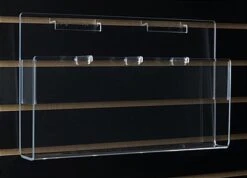 Slatwall Acrylic Accessory- This Multi-pocket add-on literature rack is great to put on your slatwall display. There are four adjustable pockets for 4″ brochures. There is also the option to have (2) 8.5″ pockets for wider literature It is made from durable acrylic so you are able to see the entire front of your literature. This accessory easily attaches directly to most slatwall displays without any other mounting hardware. You can use this rack in conjunction with any of our other accessories to be even more informative.
