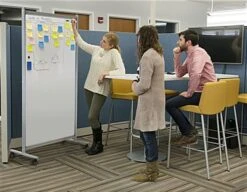 This dry erase rolling room divider is portrait oriented with double-sided magnetic surfaces, perfect for pinning important documents during office planning, scheduling, teaching, and more. The floor standing whiteboard has a lacquered steel writing surface to resist ghosting and staining for years of use. Our magnetic dry erase rolling room divider has 4 sturdy wheels and a lightweight aluminum frame for easy portable functionality from one area to the next. Conveniently lock 2 of the casters when utilizing office space during team meetings, presentations, group findings, and more. This portable portrait oriented planning board is double-sided, allowing you to brainstorm ideas on one side and pin and document important information on the other. This versatile dry erase rolling room divider will keep your team organized and help manage your workflow on an everyday basis in schools, corporate offices, conference rooms, and more.