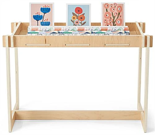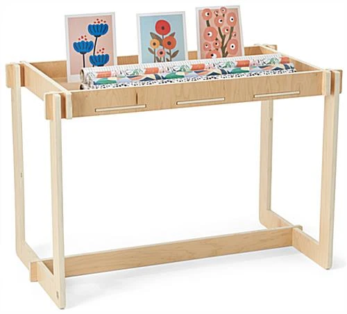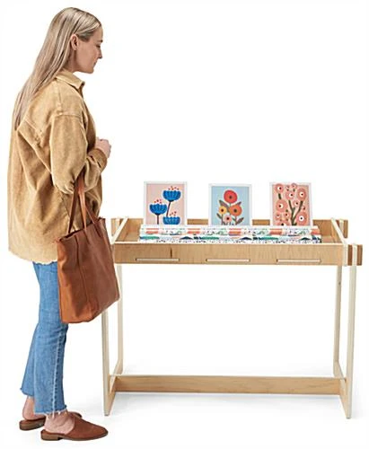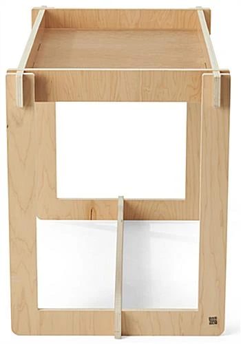 Our wooden retail dump table is a unique store fixture made of eco-friendly poplar wood, providing you with a sustainable display solution for your boutique, gift shop, or trade show booth. This unit offers a hassle-free assembly that requires no tools or hardware, using a unique Japanese joint configuration that provides stability. Each modern wooden retail dump table has an overall width of 44″ and a depth of 24″, providing ample space for merchandise. This store fixture can hold up to 50 pounds, allowing for a wide range of product display options in your space. The surface of the unit sits 2.5″ deep, making it an excellent solution for bulk merchandise to promote impulse sales at check-out. This eco-friendly wooden dump table is designed with the planet in mind to help business owners reach their sustainability goals while still making their products stand out!