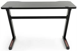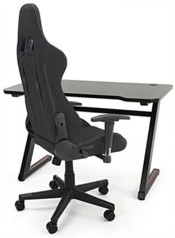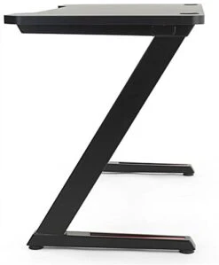 Our matte black gaming desk computer table is the perfect workstation solution that helps promote concentration through comfort and customized settings. Each z-shaped desktop has a 47″ wide x 24″ deep display area, resulting in ample space for monitors, speakers, a keyboard, and your most essential PC accessories. The two cable management grommets placed at the back of this gaming desk computer table elegantly hide any cords for a visually clean tabletop. Built to maximize comfort, each matte black ergonomic workstation features a curved-edge top, designed to seat the occupant closer to the screen and reduce stress on forearms. This gaming desk computer table with four height-adjustable floor levelers places PC action at eye level, keeping you engaged while reducing head and neck fatigue. Complete your space by pairing this modern z-shaped desktop with our matching fabric upholstered chair (), sold separately. Let our ergonomic gaming desk seamlessly take you from workstation to battle station today!