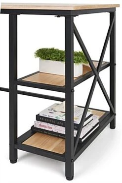 Wood and Steel Desk with Two Built-In Shelves for Added Storage Space