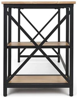 Our wood and steel desk measures 47″ W x 22″ D x 30″ H providing you with ample surface area for your computer and work files. The industrial-modern workstation has a practical design that will fit perfectly in any home or professional office space. This natural wood and steel desk has an overall weight capacity of 440lbs, allowing for flexibility in end-use. The two 20.75″ D x 9.25″ W built-in shelves provide you with plenty of storage space for your books, folders, décor items, and more. This industrial-modern workstation features a decorative black powder-coated X on each end for added design interest. Each foot features a rubber leveler allowing you to adjust the stability of your table with ease to suit your comfort. Each storage shelf has an overall weight capacity of 110lbs, allowing you to store a wide range of work-related items conveniently. This industrial wood and steel desk will modernize any home or corporate office space and pair perfectly with or for a well-rounded matching furniture set.