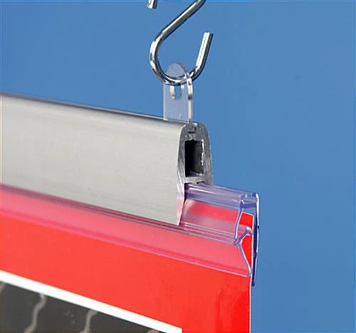 This banner rail holds graphics in a pleasing way. The snap open rails make changing out different designs quick and easy. Use this banner rail to inform your customers of areas in your store or relay the current sales going on.