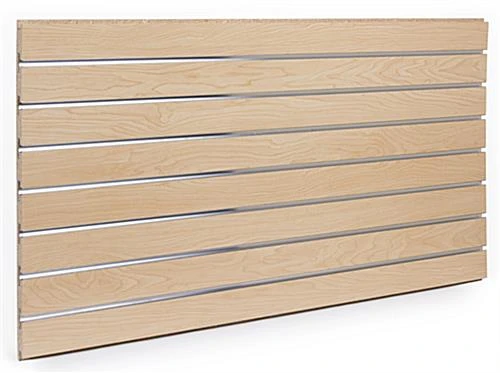 Whether you’re improving your retail displays or seeking additional storage for products, this slatwall panel system is a durable and simple solution. These boards are designed to bear heavier weight capacities than standard store fixtures. Each maple finished panel system is made of Anchor™ Core which is 50% stronger than comparable products and reinforced with metal inserts. Readysert™ strips increase the holding capacity of these store fixtures by 2.5 times, supporting up to 90 lbs. of weight. Even with the reinforced inserts, these displays are compatible with standard-sized retail accessories like hooks, shelves, and bins. Mount this board as a single unit or in horizontal strips, vertical strips, or a floor-to-ceiling panel system.