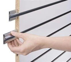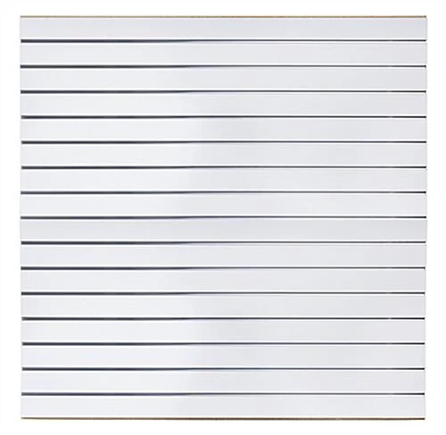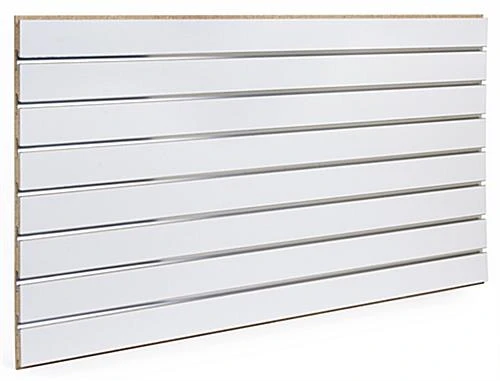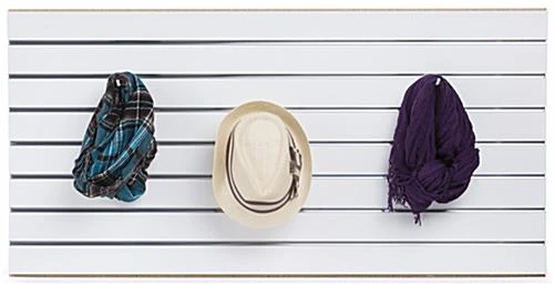 Move your heavier products off the retail store floor with this slatwall display panel. Constructed with Anchor™ Core, which is 50% stronger than standard boards, this hanging system also includes metal channel inserts. With these Readyserts™ installed, you can increase the holding strength of each retail store panel by 2.5 times its normal capacity. Insert these channels before mounting your boards for an efficient installation process. Each fixture can function as a single unit or configured into vertical strips, horizontal strips or full wall showcases. Use this panel to create a merchandising system tailored to your shop’s needs and products.