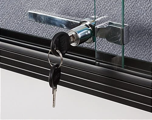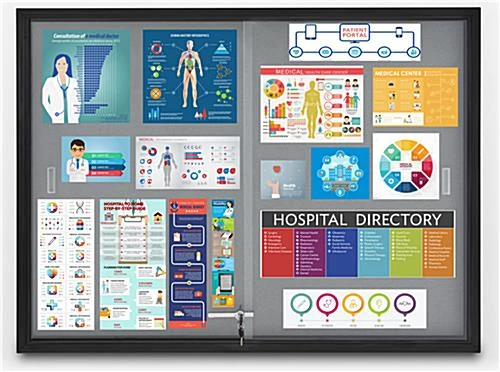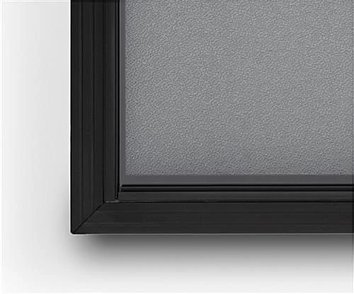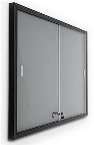 This aluminum frame bulletin board is ideal for creating messaging displays within your medical center, library, office, or school. Easily open the sliding glass doors for frequent updating, and keep important announcements safe with the secure locking mechanism that comes with two keys. This black aluminum frame bulletin board has a neutral gray fabric over the corkboard for a long-lasting professional appearance in any environment. Use the included hardware to easily mount to any indoor wall for high visibility among patrons, employees, or students. Simple pushpins or thumbtacks will allow you to create a visual display that’s all your own. This indoor aluminum frame bulletin board with sliding glass doors is an impactful and versatile way to engage visitors within any office, school or workplace!