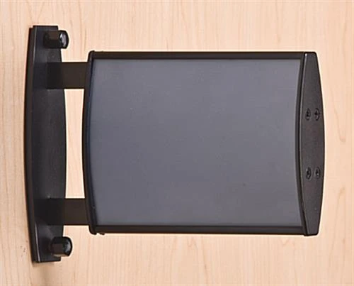 This double sided business office sign is designed to display room numbers, directions, a title or department names. The aluminum frame also makes a perfect wayfinding system to direct visitors to the right destination. This name plate, interior office sign is made to accomodate 5″ x 3-3/4″ printed graphic. The signage or artwork can be easily printed directly from a regular printer. This office sign, also known as a directory holder, is made from high quality aluminum with a black finish for used in any business environment. The universal design of this wayfinding system enables users to make use of them for many years to come. This business signage, office sign can be used to hold a landscape or portrait print. Graphics changes are relatively fast and easy with this display system. Users can use the suction cup provided to lift-up the front non-glare overlay without detaching the office sign that mounts to the wall. The non-glare overlay is designed to protect signage from getting ruined and prevents reflection, making it easy for visitors to see the details.
