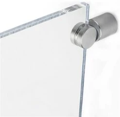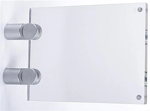 This hallway sign is made of clear acrylic and comes with two silver standoffs for wall mounting. Allow patrons to view graphics from both directions with a double-sided design display. The 5โ x 3.75โ sign is ideal for installing above doors. Most often these frames are placed outside of offices or conference rooms to help visitors find their way around. Allowing for versatility or uniformity with inserted graphics, the double-sided design provides placement for up to 2 images at a time. Each sign features a magnetic closure that keeps graphics in place while making updates a cinch; simply pull the magnets apart and slide in your new material! Offices, hospitals, hotels, and more will benefit from posting these holders above doors!