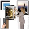 These indoor wayfinding signs are equipped with protective plastic lenses to prevent scratches. However, the lens is not water resistant and should not be used in an exterior setting. These wayfinding signs for custom graphics are made for 5″w x 7″h inserts. The visible height is only 6-1/8″, as approximate half an inch is covered by the snap frames on both the top and bottom. These interior wayfinding signs with aluminum design are perfect for use in large buildings like offices, universities and public buildings. Custom inserts for these directional signage solutions can easily be created with any standard printer and paper. These architectural wayfinding signs are also available in different sizes (see related items).