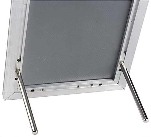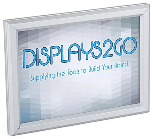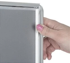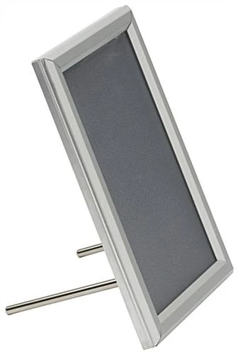 This 5 x 7 silver quick snap frame features a stylish beveled aluminum profile. Graphic switches are easy with the front-loading holder; simply lift the four sides and remove the PVC lens. Update room locations and name plates quickly with this aluminum profile snap frame! The holder switches easily between tabletop and wall mount display thanks to the set of two screw-in dowels that are included with each purchase. The snap frame also comes with all the hardware needed for wall mounting. Graphics can be displayed in this holder in either portrait or landscape orientation.