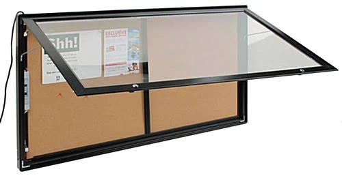 These restaurant menu cabinets, outdoor display cases are perfect for displaying important information outdoors! Enclosed bulletin boards are a great choice for use in offices, hallways, libraries, classrooms, hospitals and information centers. These outdoor display cases, also known as notice boards, are engineered from a durable aluminum frame to endure years of constant use. Each illuminated swing frame has four rounded corners that are safe for use in any busy environments compare to sharp edges. These outdoor display cases that are weather proof can applicable for use indoor or outside the establishment. Each of this enclosed menu cabinet has a rubber gasket sealed around the frame to keep the moisture and other exterior elements from getting into the showcase. Inside these enclosed outdoor display cases, there is a large self-healing cork surface. Each unit has a 53-1/4″ x 28-1/4″ interior which can hold up to (12) 8-1/2″ x 11″ standard sheets of paper. Another great feature about these outdoor display cases that have an interior corkboard is that there is a top LED light bar. The top light also makes it easy for passersby to read the content in the swing frame especially at night.
