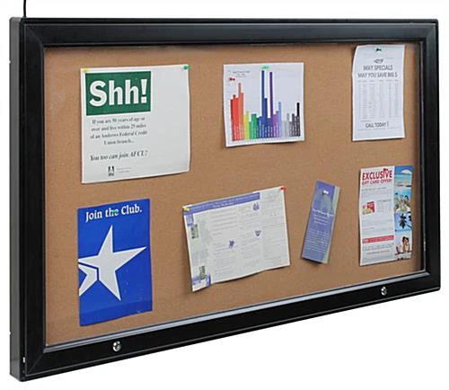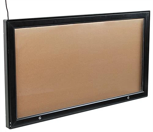 These illuminated notice boards, outdoor display cases that have a swing-open door offer an easy and convenient way to exhibit memos, notices, schedules and posters. Messages and print-out can be easily attached on the easy-to-tack natural grain corkboard by using push pins, thumb tacks or staples. The purchase of these illuminated outdoor display cases also comes with a bag of push pins. Depending on how the menu cabinets are mounted, the door swings open from the side or opens up at the bottom for easy changes. During the process of changing out the sheets, users can use the bar at the side to keep the door open and use both hands to attach the message to the corkboard. These restaurant notice boards also come with two tumble locks at the side of the door, making the cabinet ideal if tampering is a concern. A set of keys will also be provided with the unit which only allows authorized personel to access the unit. The purchase of this unit comes with a 74″ long power cord with grounded plug. Most real world applications utilize a professional electrician hard-wiring the unit directly into the wall power source. These exterior-rated menu cabinets can be mounted vertically or horizontally to the wall. The purchase of these restaurant notice boards will include two Z-bars, screws and mounting anchors. Keep everyone involved and up to date by installing this wall-mount illuminate menu cabinet today!