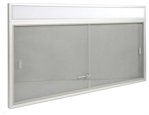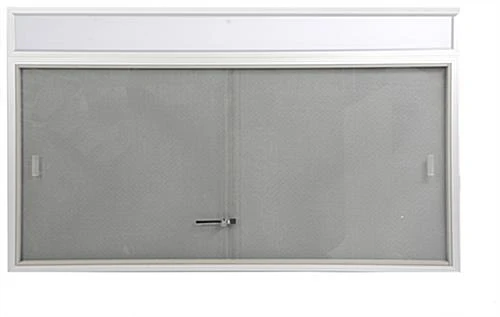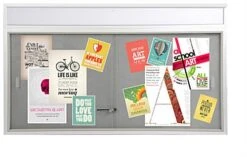 Each glass indoor bulletin board, also known as pinboard, is 5’ by 3’. This display case provides a full view of the contents inside. The locking and sliding glass doors easily open and close. This indoor bulletin board, that has a header for a custom banner, can be paired with vinyl lettering done by a local sign shop. The space allows users place a customized header. Each bulletin board, that is a display case, can be purchased for busy locations such as libraries, hospitals, classrooms, and offices. The cork unit comes with a set of keys to lock the sliding glass doors. A school glass display case, indoor bulletin board installs directly to the wall to keep everyone informed!