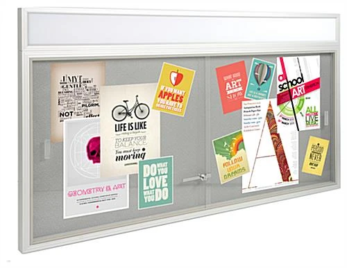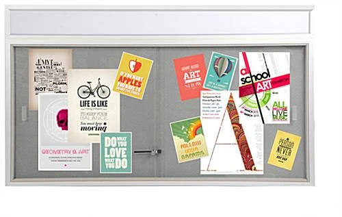This school glass bulletin board is an ideal way to communicate and promote to the community. Each display case mounts directly to the wall. A educational glass bulletin board, with glass, is designed for public use in a high traffic area. Each unit features a fabric interior that securely holds any and all information and messages. This indoor bulletin board, with aluminum frame, can be used with thumb tacks and push pins. The cork display case is mainly used for holding a large amount of information. A School glass bulletin board, that has fabric backing, can hold 10-15 sheets of 8-1/2” by 11” paper. The sliding doors and gray fabric are surrounded by a silver aluminum frame.