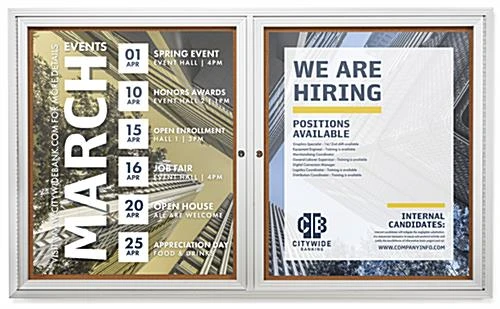 This 60″ x 36″ locking cork board features an enclosed design to securely display student work, announcements, and schedules in school classrooms and hallways. The silver aluminum frame is durable for long-term use. This two-door locking cork board ships fully assembled for hassle-free set up at universities, community centers, and post offices. The tackboard can hold messages, notices, and event postings with pushpins and tacks. These enclosed aluminum frames include keys to switch out printed content easily. This indoor wall-mounted display can keep employees up to date on schedule changes. This silver locking cork board can be used as a centralized location for announcements in schools, visitor centers, and more.