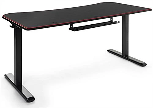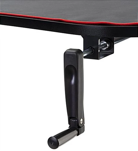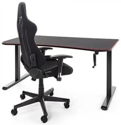 This ultra-wide adjustable computer desktop provides plenty of display space, perfect for your serious working, studying, and gaming goals. Each ergonomic sit-and-stand table’s surface is uniquely covered by an edge-to-edge high-quality neoprene mat that will remain in place during long hours of mouse operation. This matte black adjustable computer desktop with 63″ wide x 31″ deep desk board features a tapered edge design that places you closer to the monitor and provides pressure reduction to reduce forearm fatigue from hours of working or gaming. Choose between sitting or standing by using the detachable hand crank for height options from 29.5″ minimum to 48.8″ maximum. The durable t-shaped steel legs on this adjustable computer desktop adheres to the matte black particle board table top resulting in a heavy-duty fixture that can withstand up to 110 pounds. Additionally, a built-in concealed cable management system keeps your area distraction-free and unruly cords neatly in place. It’s time to level up with our high-quality ergonomic sit-and-stand desk that is sure to place you in the perfect position every time!