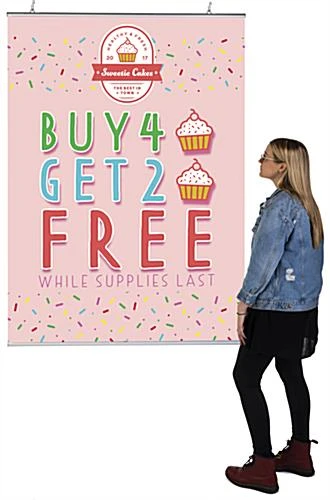 These aluminum snap rail poster hangers are perfect when you have 6 feet of banner to suspend! The banner rail has a spring-loaded snap frame that will clamp your banner tight. These aluminum snap rail poster hangers, like a sign gripper or banner holder, can really make a difference in your marketing campaign or special event. No need for heavy framing that can make it difficult to hang from a ceiling. These aluminum snap rail poster hangers take the hassle out of hanging an unwieldy graphic. These print holders can easily be set up with by one person, with very little effort!