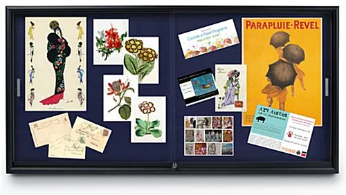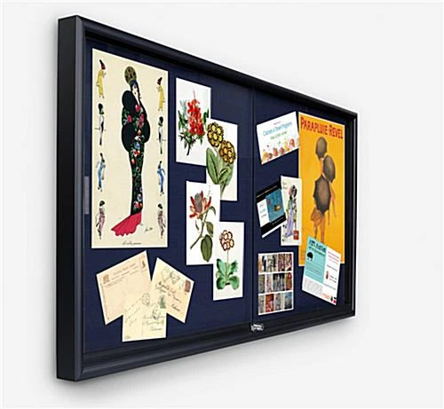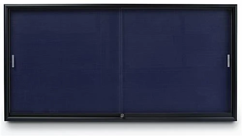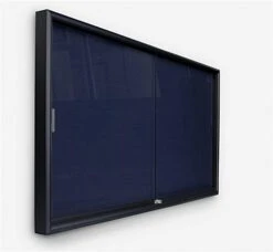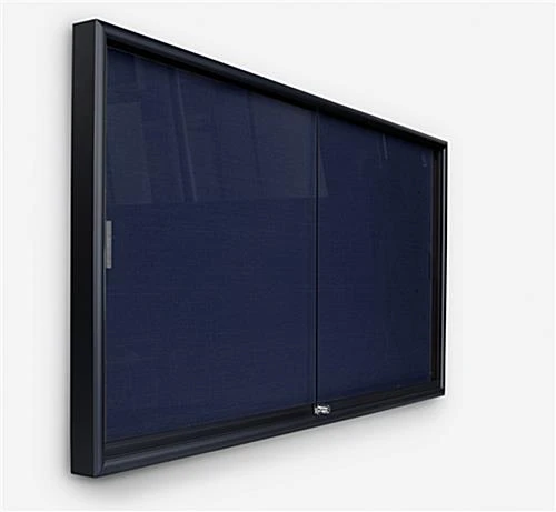 Enclosed bulletin boards, that are used to tack messages, include tempered glass sliding doors. These sliding units are surrounded by a black aluminum frame. The decorative frame is both attractive and durable bordering these enclosed bulletin boards that are used as cork displays. All the necessary hardware is included in the purchase of these units. These enclosed bulletin boards, also known as fabric tackboards, easily mount to the wall of businesses, offices, and schools. The large interior fabric space allows users to post a significant amount of information and messages. A cork display, enclosed bulletin boards are the ideal unit for high traffic areas!
