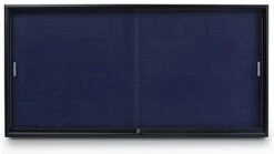 These enclosed bulletin boards are used to communicate with customers and visitors of a business, school, and a variety of offices. The 6′ by 3′ cork display is designed to hold messages and photos. All enclosed bulletin boards, for offices, allow messages to be put up as fast as they are taken down. Each cork display has a wide blue background constructed with tightly woven fabric. Enclosed bulletin boards, with a decorative aluminum frame, mount directly to the wall. These fixtures are designed for long lasting use. All enclosed bulletin boards, that are 72″ wide, are ideal for displaying important messages to the public. This cork display can hold a large amount of information, including photos, notices, and messages directed at employees in offices or students in schools.