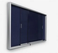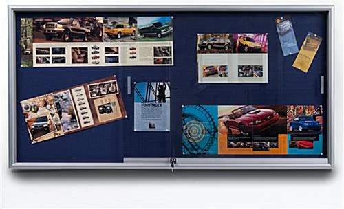 School bulletin boards, that have rolling guides, are useful for other locations as well. These message corkboards can be used in town halls, offices, hospitals and other community areas. All school bulletin boards, that are designed with blue fabric, feature an attractive cork backing. Material can be tacked to this unit over and over again. These school bulletin boards, that have an enclosed frame, will not crumble after continual use. The tackboards are designed with tempered glass doors that include rolling guides for easy use. Users whether students or a teacher, can easily slide the doors open and closed. A silver aluminum frame surrounds the border of these wall tackboards, school bulletin boards. These message corkboards are functional and attractive. School bulletin boards, also known as message corkboards, can be easily installed in a high traffic area to keep the public informed and interested!