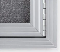 This fabric cork board is a great way to get word out to the public. The bulletin corkboard is designed for use indoors only. This cloth covered tackboard, fabric cork board is durably constructed with an anodized aluminum frame featuring a matte silver finish. The durable fabrication makes the unit great for long-term use in public areas, such as a school or community center. This wall-mount pinboard, enclosed fabric cork board features a large interior cloth covered surface. The interior cloth covered surfaces hold up to (24) 8-1/2″ x 11″ sheets. An indoor fabric cork board, like the one seen in here, can be used to display posters, maps, schedules, notices, menus, postings and memos. Messages can be easily attached to the interior surface using thumb tacks or push pins. This fabric cork board that has 3 segments gives users ample space for posting an assortment of print-outs and important information. Unlike regular corkboards, this enclosed tackboard can hide pin holes and will not crumble after many years of use. This fabric cork board that has a self-healing, cloth covered surface is ideal for repeated tacking.