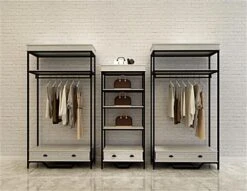 Our french country etagere shelving, also known as a bookcase, is a merchandiser’s dream come true. This open style design is ideal for merchandising anything from handbags, shoes, apparel, to home décor, and much more. Each french country etagere shelving features a soft grey hand-rubbed application over white, which creates an elegant whitewash finish. Ample merchandising space is what you get with this open style bookcase design, which easily adapts to commercial, retail, or home setting. This display unit includes a sturdy black powder-coated frame and bottom decorative faux drawer, which makes this piece well-suited for a high-end establishment. Provide an elegant addition to your retail space while simultaneously providing multiple merchandising opportunities with etagere shelving.