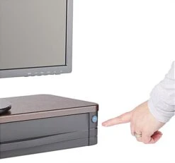 Our UVC disinfecting monitor stand features LED sanitization to clean your keyboard and mouse, eliminating up to 99.9% of bacteria. This versatile product features a faux wood grain finish complimenting the aesthetic of any space. Each fixture is suitable for computer screens up to 27”w, making it the perfect addition to any office or shared workspace. This unit is an efficient cleaning solution for schools, libraries, or offices with multi-user computer stations. This countertop disinfecting monitor stand with LED sanitization has an auto-shutdown light feature, turning off illumination when the chamber door is open. This fixture has a USB-A power cord that allows you the convenience of plugging directly into your technology or any USB charging cube. It also features a 15-minute pre-set feature enabling you to effectively sanitize and clean your keys and cellphone without harsh chemicals or sprays. Our contemporary disinfecting monitor stand comes fully assembled and is a perfect solution for shared workspaces to cleanse high-touch items, ridding them of the germs and bacteria that lurk behind them.